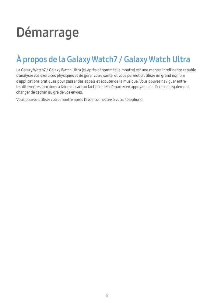 162 pages • Langue: Français • Catégorie: Objets connectés • PDF: Mode d'emploi Samsung Galaxy Watch7 Ultra